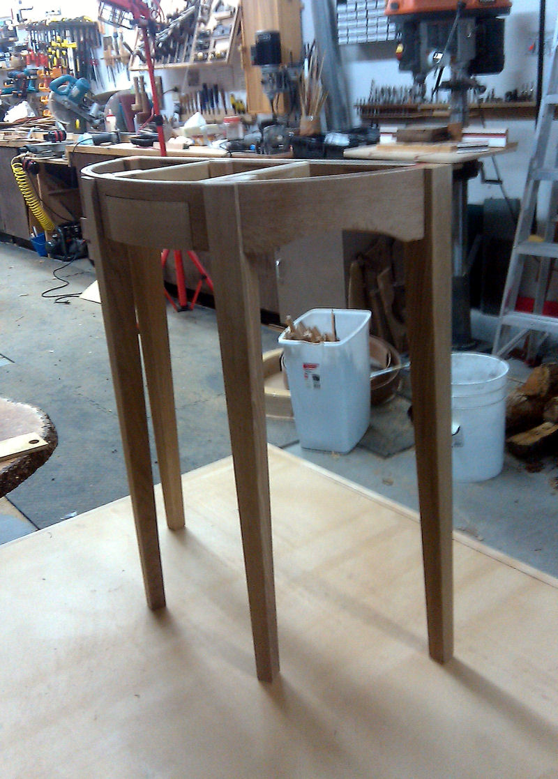 After the arches have been cut into the apron, the opening for the drawer is made with a plunge cut on a tablesaw, not for the faint-hearted.