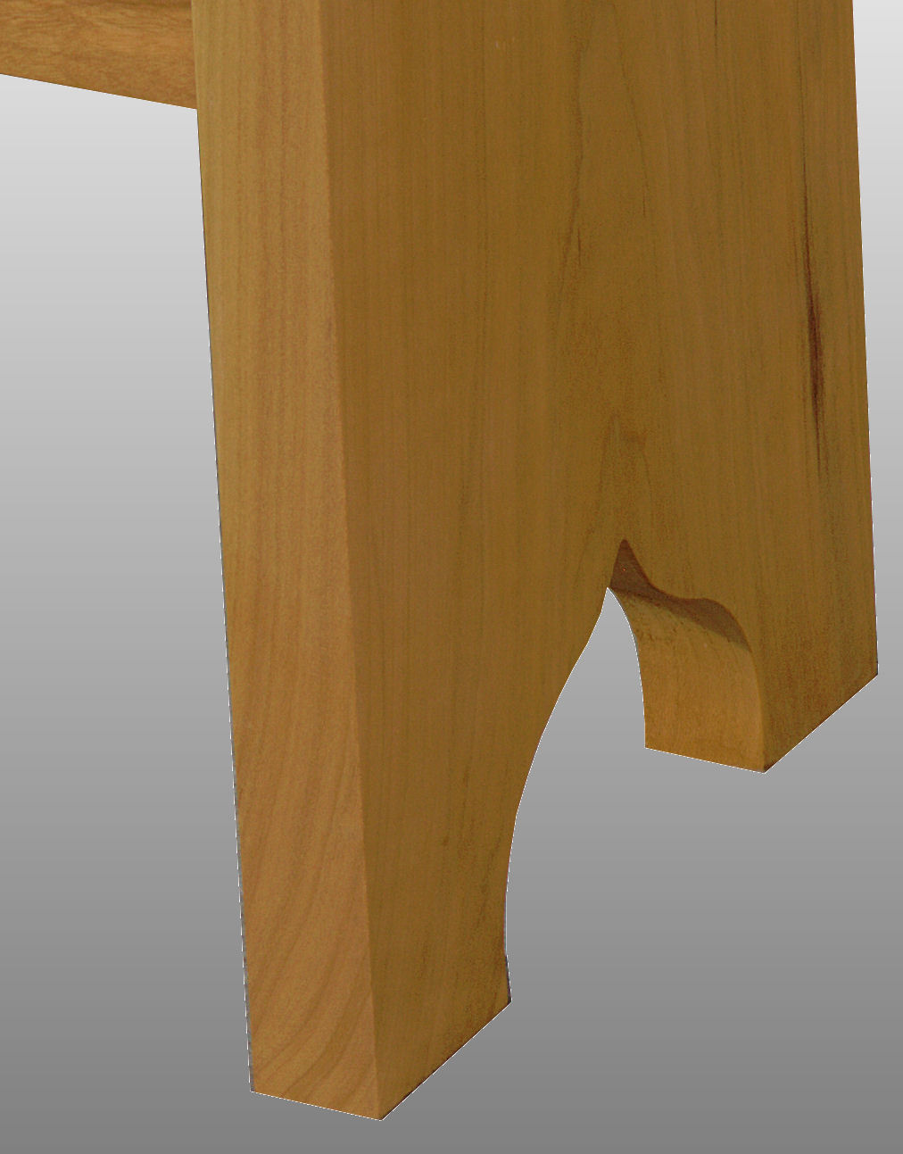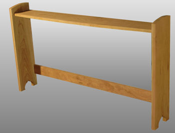 At only 24 inches high and less than seven inches deep, this low profile table was designed to fit unobtrusively in a hallway behind a desk chair. It provides a small shelf for a wired phone, charging cradle, etc., while not blocking traffic. Waste and recycling containers fit under the shelf. The wood is cherry with a shellac/wax finish.