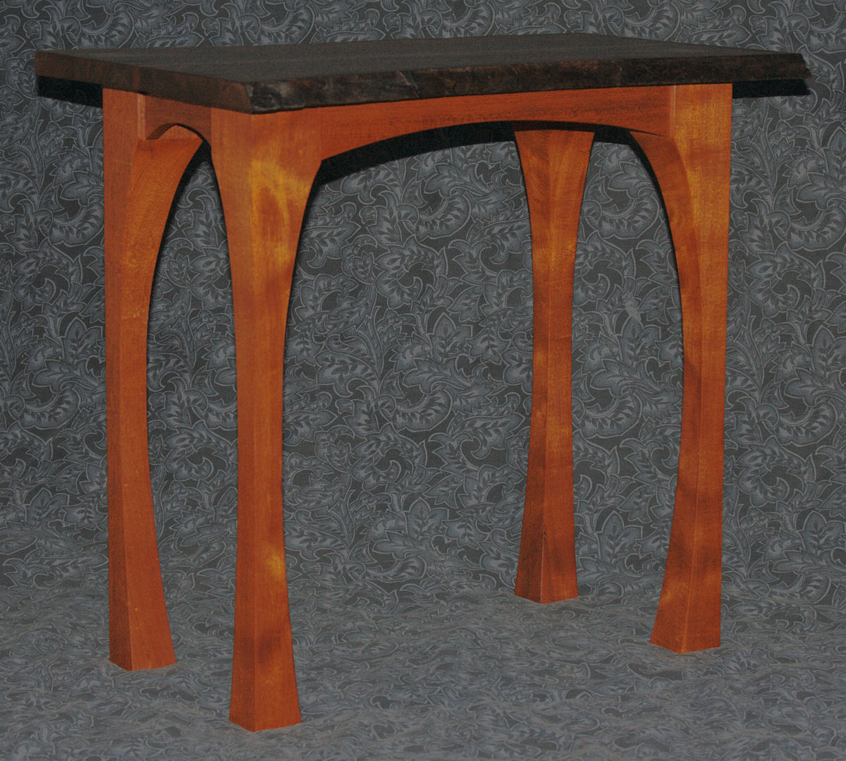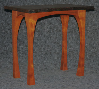 The curved legs and apron echo the curves of the slab top.